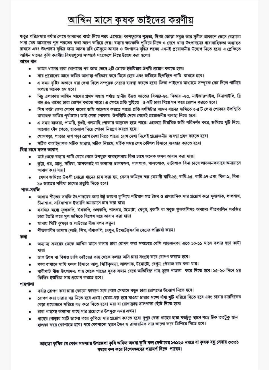 আশ্বিন মাসে কৃষক ভাইদের করণীয়