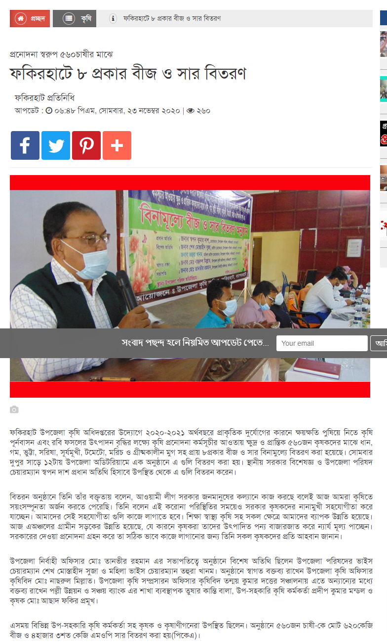 কৃষি সম্পর্কিত দৈনিক প্রতিদিনে সংবাদ
